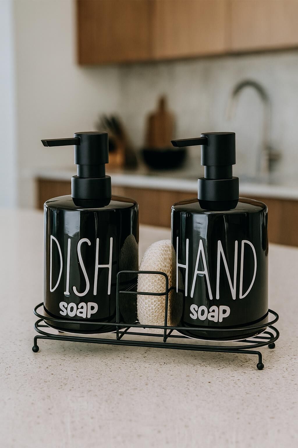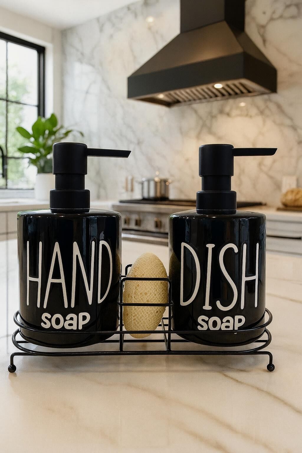 ENYAZA(2024) 2'li Metal Stantlı ve Süngerli Sıvı Sabunluk Mutfak ve Banyo Seti Hand Dish Fenomen Set 500 ML Siyah