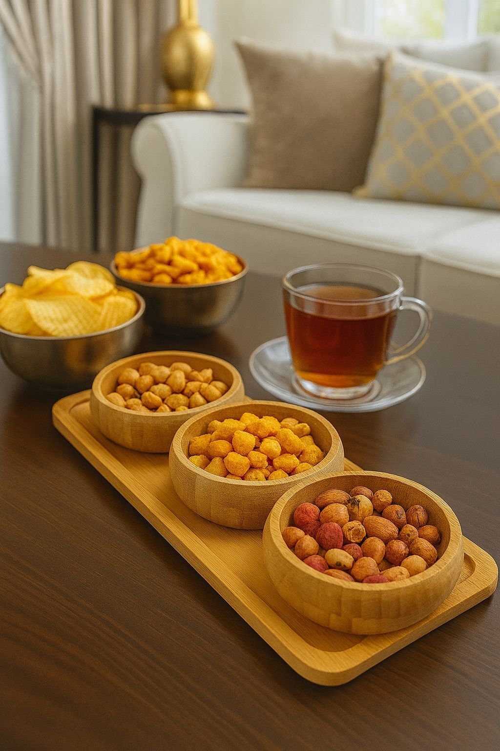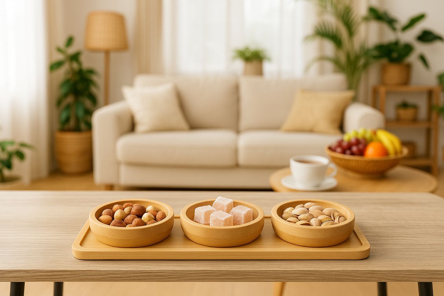 ENYAZA(2024) 3'lü Bambu Stantlı Çerezlik, Kahvaltılık Kase Seti, Bambu Kuruyemişlik Seti