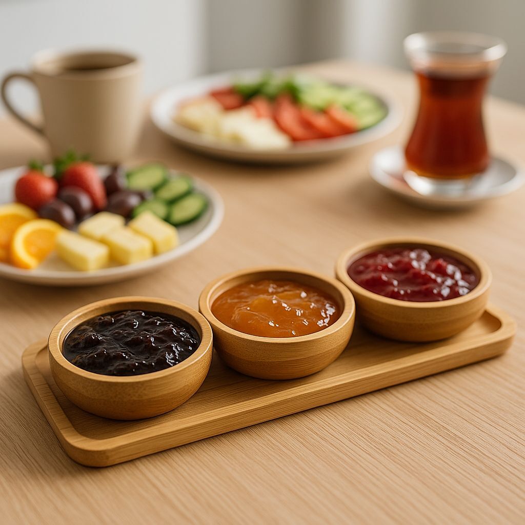 Ürün Özellikleri:✅ Set İçeriği: 3 adet kase + 1 adet bambu stant✅ Malzeme: Çevre dostu doğal bambu ve kaliteli seramik/akrilik kase✅ Boyut: Stand uzunluğu 30*11cm / Kase çapı 9 cm (isteğe göre ölçüler eklenebilir)✅ Kullanım Alanları: Çerez, kuruyemiş, sos, meze, zeytin, atıştırmalık sunumları için ideal✅ Uzun Ömürlü Kullanım: Dayanıklı malzemesi sayesinde uzun süre formunu korur✅ Kolay Temizlik: Kaseler bulaşık makinesine uygundur, bambu stant ise nemli bezle silinerek temizlenmelidir✅ Şık Tasarım: Modern ve minimal tarzıyla mutfağınıza ve sofranıza zarafet katarNeden Tercih Etmelisiniz?Doğal bambu stand sayesinde çevre dostu bir tercih yaparsınız.