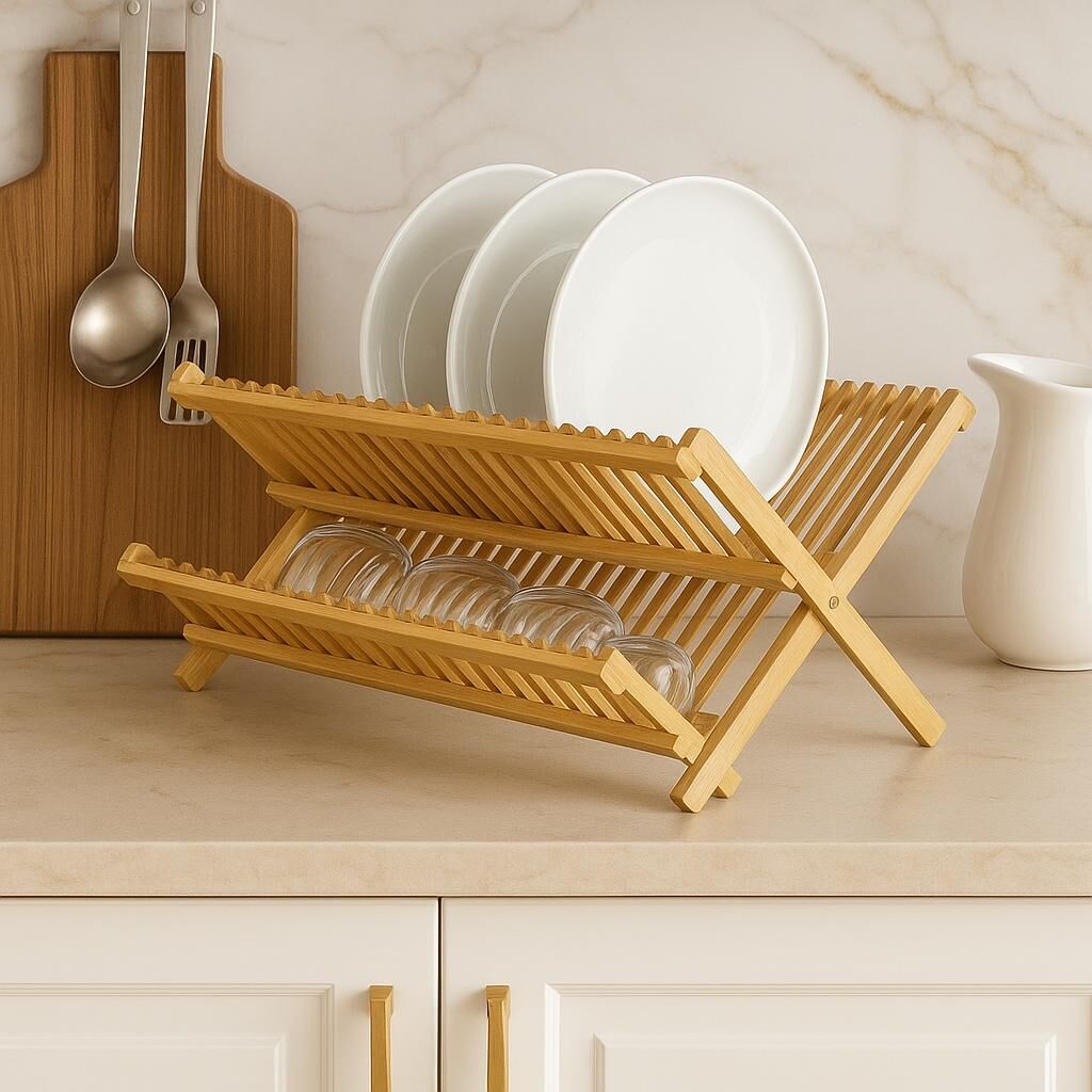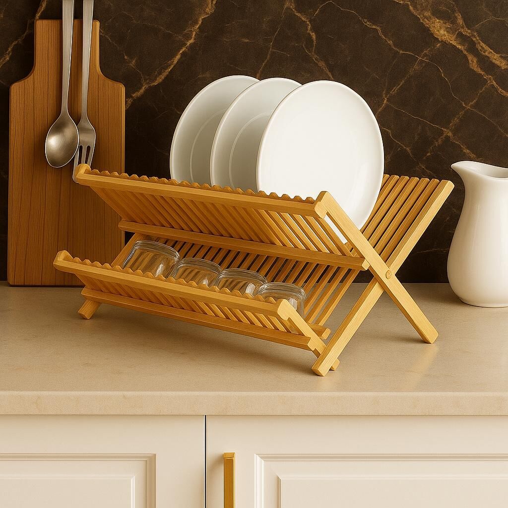 ENYAZA(2024) Bambu Bulaşık Sepeti Bambu Tabaklık Bulaşıklık 46 Cm Bambu Bulaşık Sepeti Bambu Tabaklık Organizer
