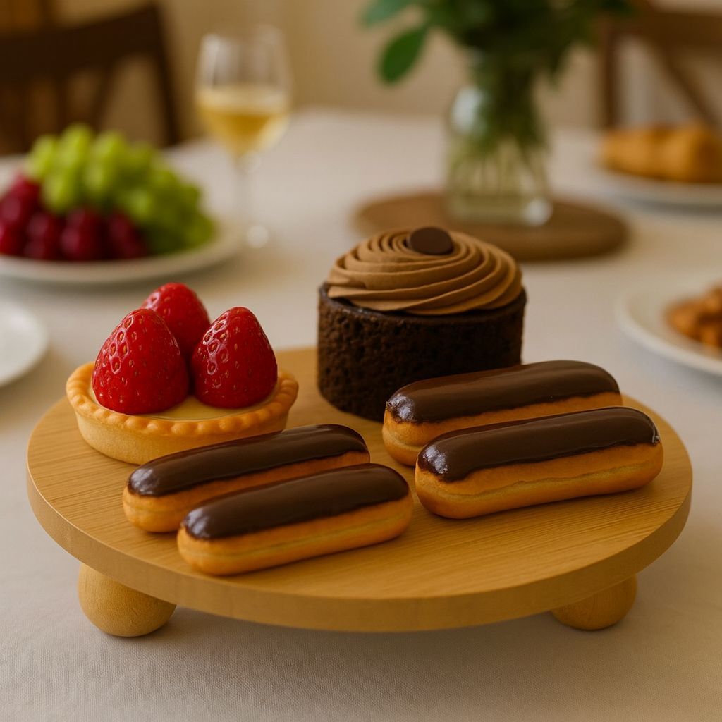 ENYAZA(2024) Bambu Top Ayaklı Sunumluk 25x25 cm – Şık Pasta & Tatlı Kahvaltı Servis Tabağı